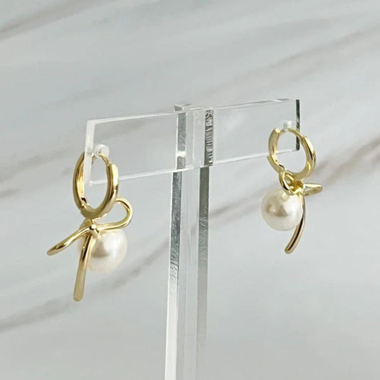 Bowed with Pearl Drop Earrings